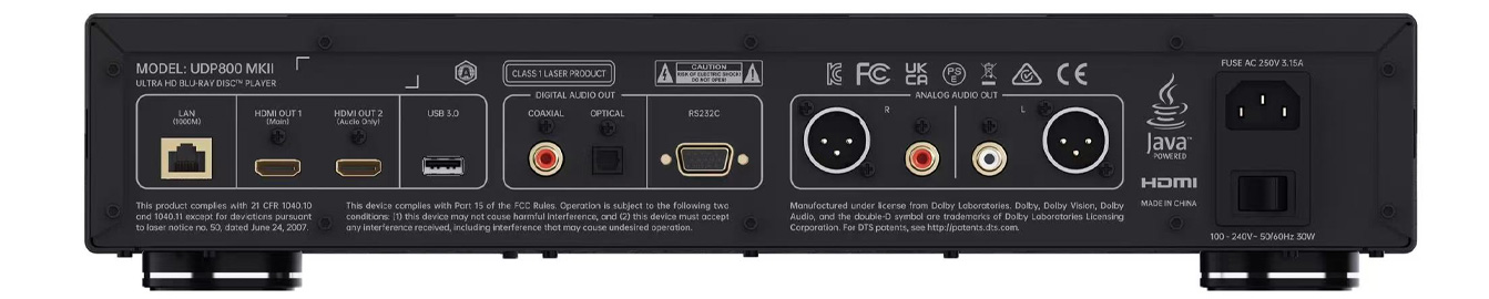 Wir sagten doch: Keine Kompromisse. Am Anschlussterminal des Magnetar UDP900 MKII fehlt auch absolut nichts!Die deutlich besseren Messwerte (höherer Signal-Rausch-Abstand, geringeres THD+N, erweiterter Frequenzbereich) und das massivere, schwerere Chassis zielen klar auf Referenzniveau in Bild und Ton, während der UDP800 MKII als sehr audiophiler „Reference“-Player der gehobenen Klasse durchgeht.