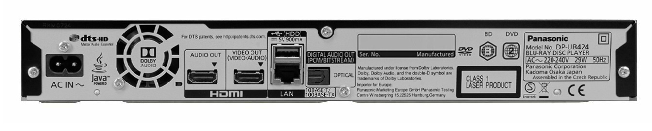 Der Panasonic DP-UB424 ist der „große Bruder“ des DP-UB154 der sich ebenfalls auf die Wiedergabe von CDs, DVDs, Blu-rays, 3D Blu-rays und 4K Blu-rays konzentriert. Was Videostandards anbelangt, kann der Player 4K-Videosignale mit bis zu 60p inkl. HLG, HDR10 und HDR10+ verarbeiten. Dolby Vision HDR ist bei diesem Modell nicht mit dabei. Einer der Vorteile gegenüber dem kleineren Modell ist, dass der DP-UB424 über zwei HDMI-Ausgänge verfügt, über die das Audio- und Videosignal getrennt voneinander an die Wiedergabegeräte (TV/Projektor und Soundbar/Soundanlage) ausgespielt werden können. Das soll bei der Audiodarstellung vor sogenanntem Signalrauschen schützen.