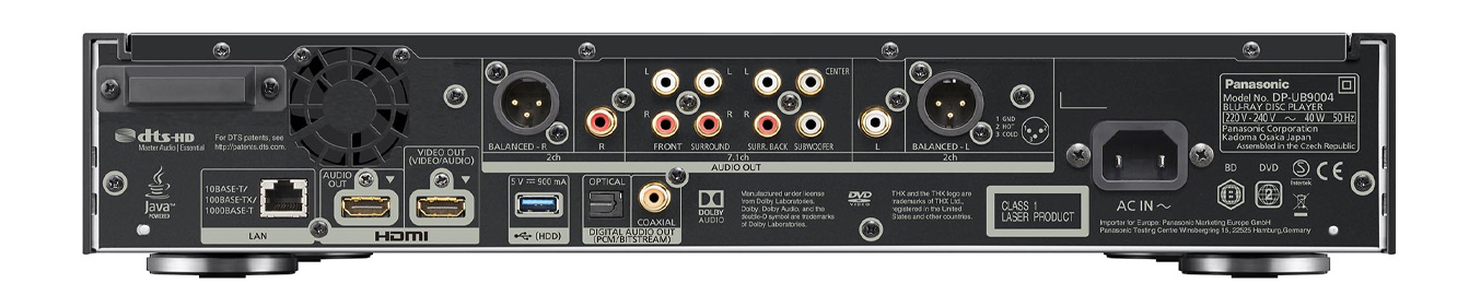 Allein der Blick auf die Anschlüsse des Panasonic DP-UB9004 reicht aus, um zu verstehen, in welchem Ausstattungssegment wir uns bewegen.