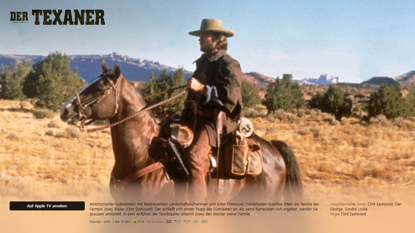 Endlich erreichen zwei weitere 4K-Restaurationen beliebter Filmklassiker von Clint Eastwood den Apple TV-Store. „Dirty Harry“ und „Der Texaner“ können ab sofort in 4K-Qualität inkl. HDR, Dolby Vision und Dolby Atmos bestellt werden.