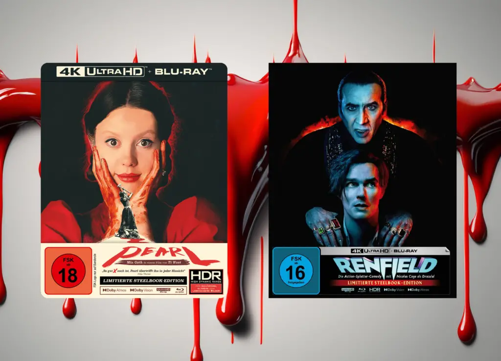 Beginnen wir mit etwas Liebe von Turbine. Die Fime „Pearl“ mit Mia Goth in der Hauptrolle und „Renfield“ mit Nicolas Cage in der Rolle des Graf Dracula, sorgen beide für kurzweilige, gute Unterhaltung. Beide Titel werden in bester 4K Qualität inkl. HDR10, Dolby Vision und Dolby Atmos 3D-Sound (Englisch und Deutsch) im schicken Steelbook ausgeliefert. Derzeit exklusiv über den Turbine-Shop zu bekommen: