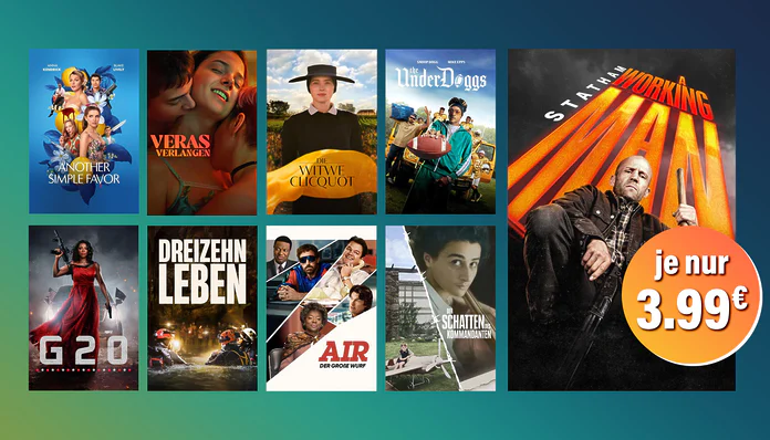 In einem überraschenden Preis-Update hat Apple TV mehrere erst kürzlich veröffentlichte Filme in 4K-Qualität direkt auf 3.99 Euro reduziert. Zu diesem Kaufpreis stehen euch ab sofort Youngtimer wie „Air – Der große Wurf“, „A Working Man“, „G20“, „Dreizehn Leben“ oder „A Working Man“ zur Auswahl. Mehrere der Titel schaffen es deswegen auch auf Anhieb in die Verkaufscharts von Apple TV. Wir haben euch im Anschluss alle 4K Filme für 3.99 Euro (Kaufpreis) auf Apple TV aufgelistet. Wer einen kompletten Überblick mit allen Preisstaffeln bevorzugt, der darf sich gerne in unserem Schnäppchen-Special umsehen.