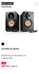 Wir möchten euch jetzt natürlich keine Panik machen, aber die ersten Kontingente beliebter Produkte innerhalb des Black Friday Sales sind bereits vergriffen. So kann man sich z.B. nicht mehr die passiven Stereo-Lautsprecher „Ultima 40„, die Noise Cancelling-Kopfhörer „Real Blue NC“ oder das „Cinebar Duett Power Edition„, bestehend aus Soundbar und Subwoofer, sichern. Es gibt aber noch ausreichend Ausweichangebote, mit denen ihr euren Audiogenuss in so ziemlich jeder Lebenslage optimieren könnt. Die Black Friday Sale-Seite ist auch recht übersichtlich gestaltet. Die Auswahl ist nach Bluetooth-Lautsprechern, Heimkino, Soundbars, Stereo, Kopfhörern und WLAN-Lautsprechern sortiert. Nachfolgend haben wir euch die beliebtesten Angebote aus der Aktion in ein Bildkarussell gepackt. Klickt einfach auf einen der Deals, der euch anspricht, und gelangt direkt zur Angebotsseite!