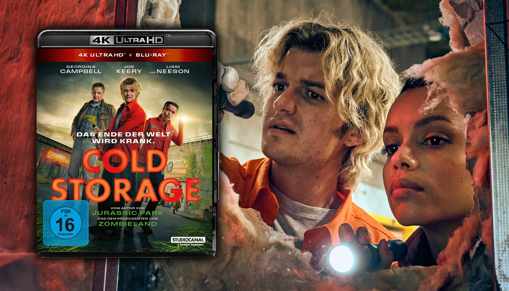 Die Zombie-Horror-Komödie „Cold Storage“ feiert ihren Kinostart in Deutschland und parallel dazu steht bereits die 4K Ultra HD Blu-ray zur Vorbestellung bereit. Der Film mit Liam Neeson und Stranger Things-Star Joe Keery erscheint am 21. Mai 2026 fürs Heimkino.
