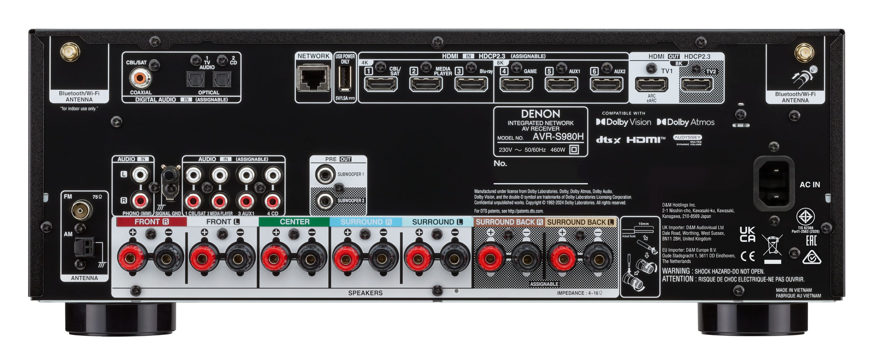 Die Schnittstellen des Denon AVR-S980H.