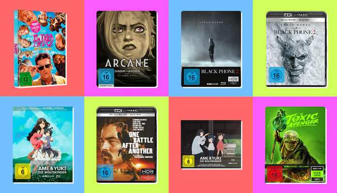Hier findest du die Film-Neuheiten auf 4K Ultra HD Blu-ray der Kalenderwoche 04/2026 (19. Februar – 25. Februar 2026). Dieses Mal mit dabei „One Battle After Another“ mit Leonardo DiCaprio, „Black Phone 2“ mit Ethan Hawke oder der Animationshit „Ame & Yuki – Die Wolfskinder“.