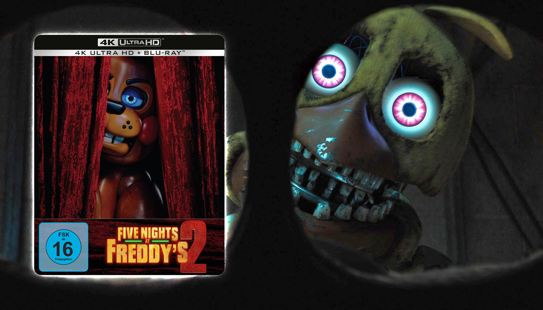 Rechtzeitig zum Kinostart von „Five Nights At Freddys 2“ (04. Dezember 2025) kann die Heimkino-Variante im limitierten 4K Blu-ray Steelbook bereits vorbestellt werden. Der Titel ist derzeit noch mit einem vorläufigen Verkaufsdatum (31. Dezember 2026) gelistet, wir vermuten jedoch, dass der Titel spätestens im Februar/März 2026 ausgeliefert wird. Universal Pictures hat noch nicht alle Ausstattungsdetails genannt, ein 4K-Master mit HDR10 ist aber nahezu sicher. Zudem werden die deutsche und die englische Tonspur mit Dolby Atmos 3D-Sound präsentiert. Hier könnt ihr die Steelbook-Variante bereits vorbestellen: