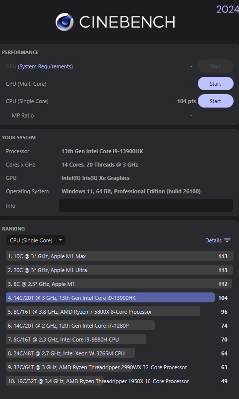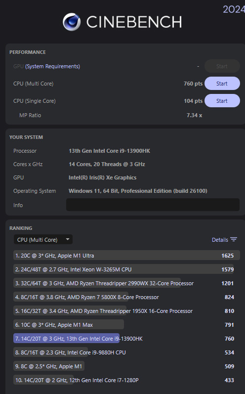 | CPU | Intel® Core i9-13900HK (14 Kerne, 20 Threads, 24 MB L3-Cache, bis zu 5,4 GHz) |