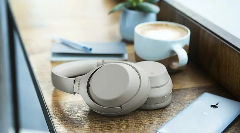 Perfektes Trio: Sony WH-1000XM3, Smartphone und ein Cappucino