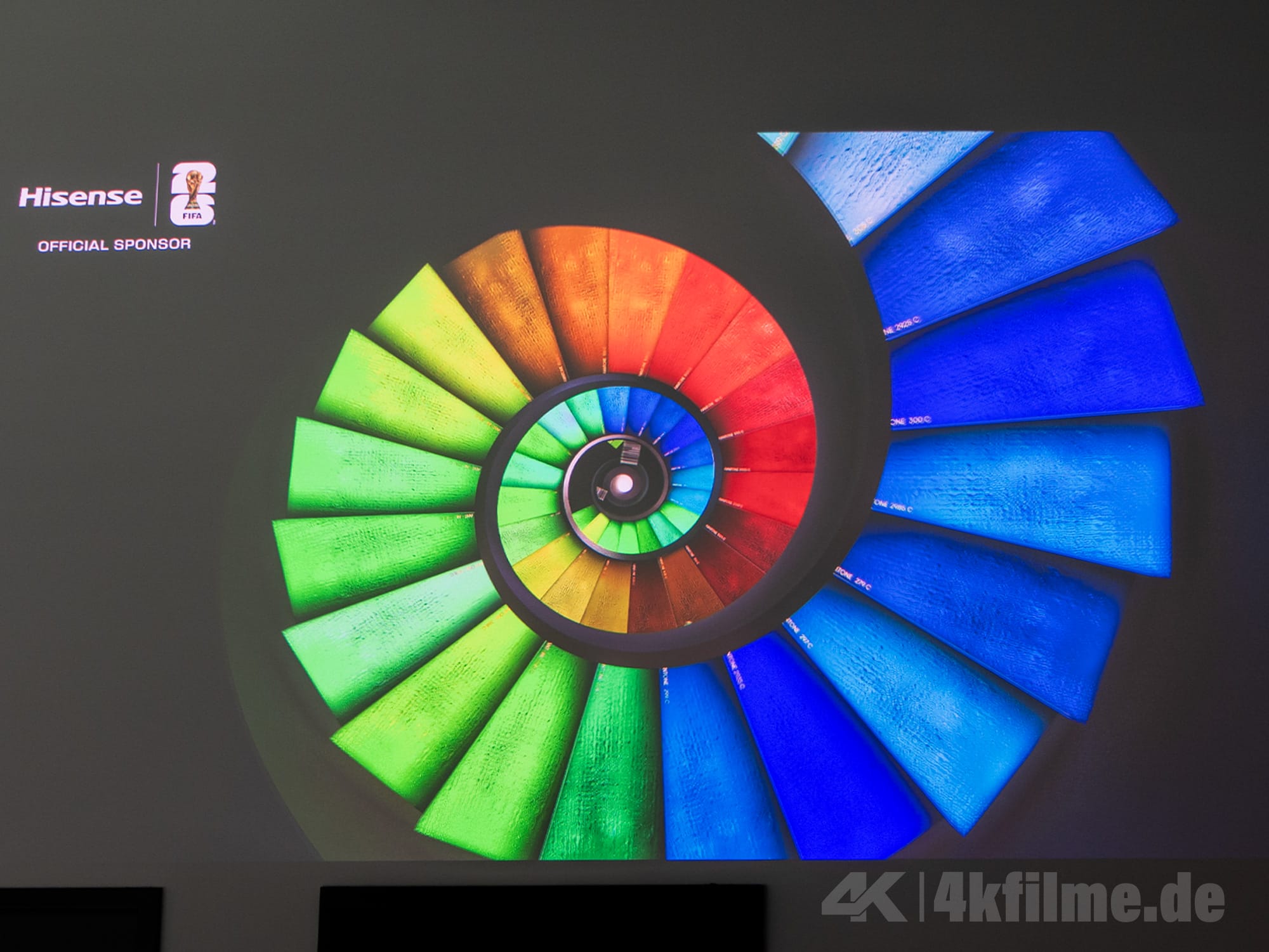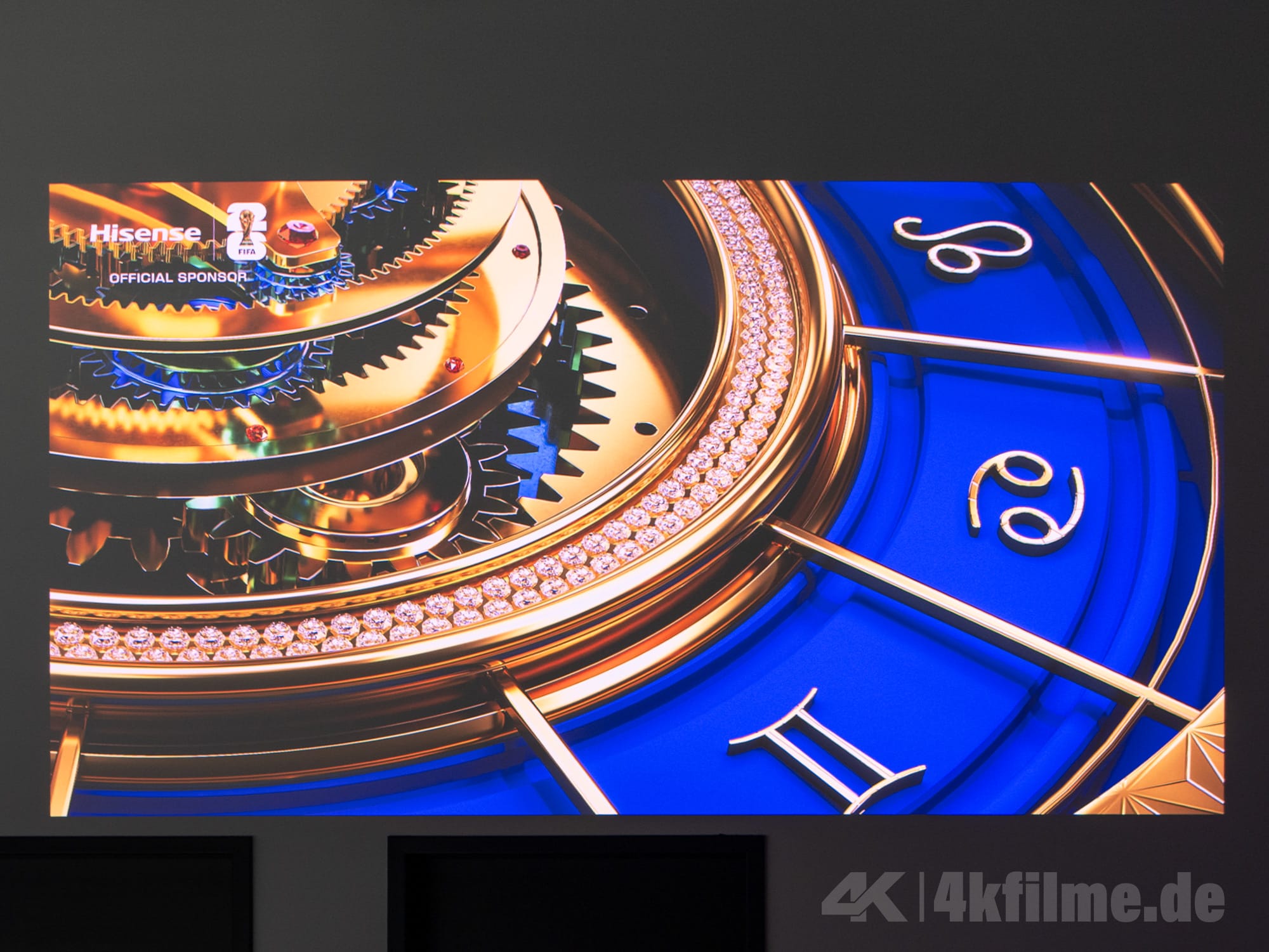 Auf dem Papier klingt das alles fantastisch. Doch kann der 4K-RGB-Triple-Laser-Projektor dieses Qualitätsversprechen auch auf die Leinwand bringen? Wir meinen: Ja! Man muss dazu sagen: Die Voraussetzungen für die Projektion des Hisense XR10 waren nicht unbedingt ideal. Wir hatten nur einen leicht abgedunkelten Raum mit ausreichend Restlicht, und als Projektionsfläche musste eine weiße Wand über den Toiletten herhalten (absolut unwichtiges Detail, fanden wir in diesem Kontext jedoch sehr witzig). Trotz der widrigen Umstände konnte uns der Hisense XR10 sofort in seinen Bann ziehen. Die hohe Spitzenhelligkeit, die sich über die gesamte Projektionsfläche zog, die leuchtenden Farben und das Fehlen von Regenbogeneffekten und „Laser-Speckles“ machten die Demovideos zum Hochgenuss. Auch bei kontraststarken Inhalten mit viel dunkler Fläche, konnten wir mit dem bloßen Auge keinen „Glauschleier“ in den dunklen Bildbereichen erkennen.