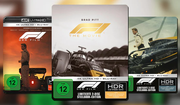 Ab sofort gibt es den Kinohit „F1 – Der Film“ mit Brad Pitt in der Hauptrolle als 4K Ultra HD Blu-ray in zwei limitierten Steelbook-Varianten sowie einer Standard-Version zum Vorbestellen. Sichert euch jetzt euren Favoriten.