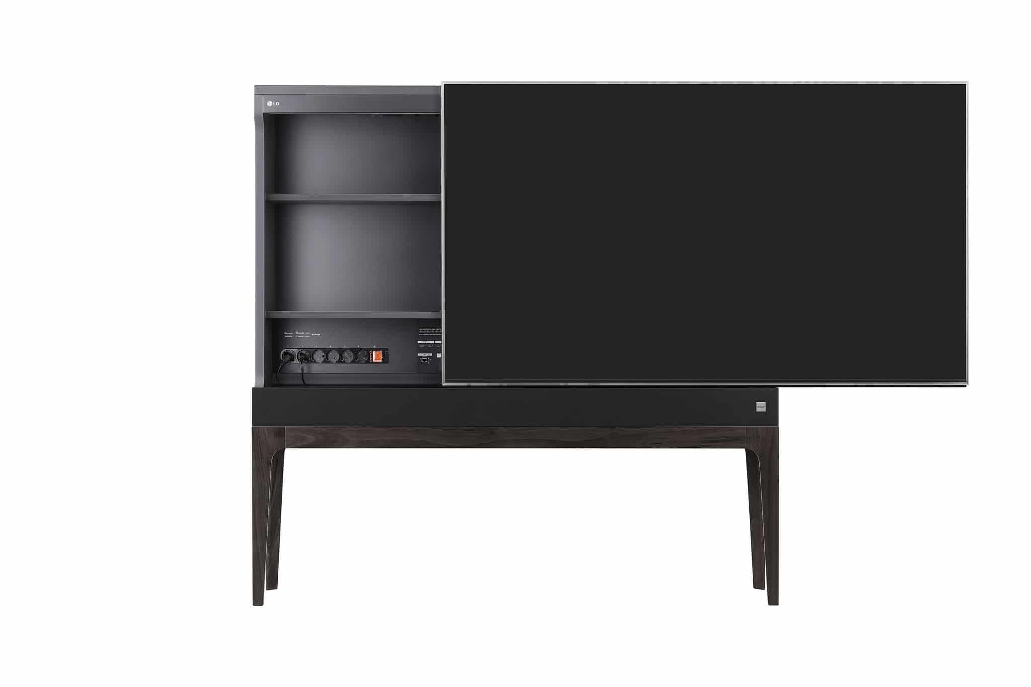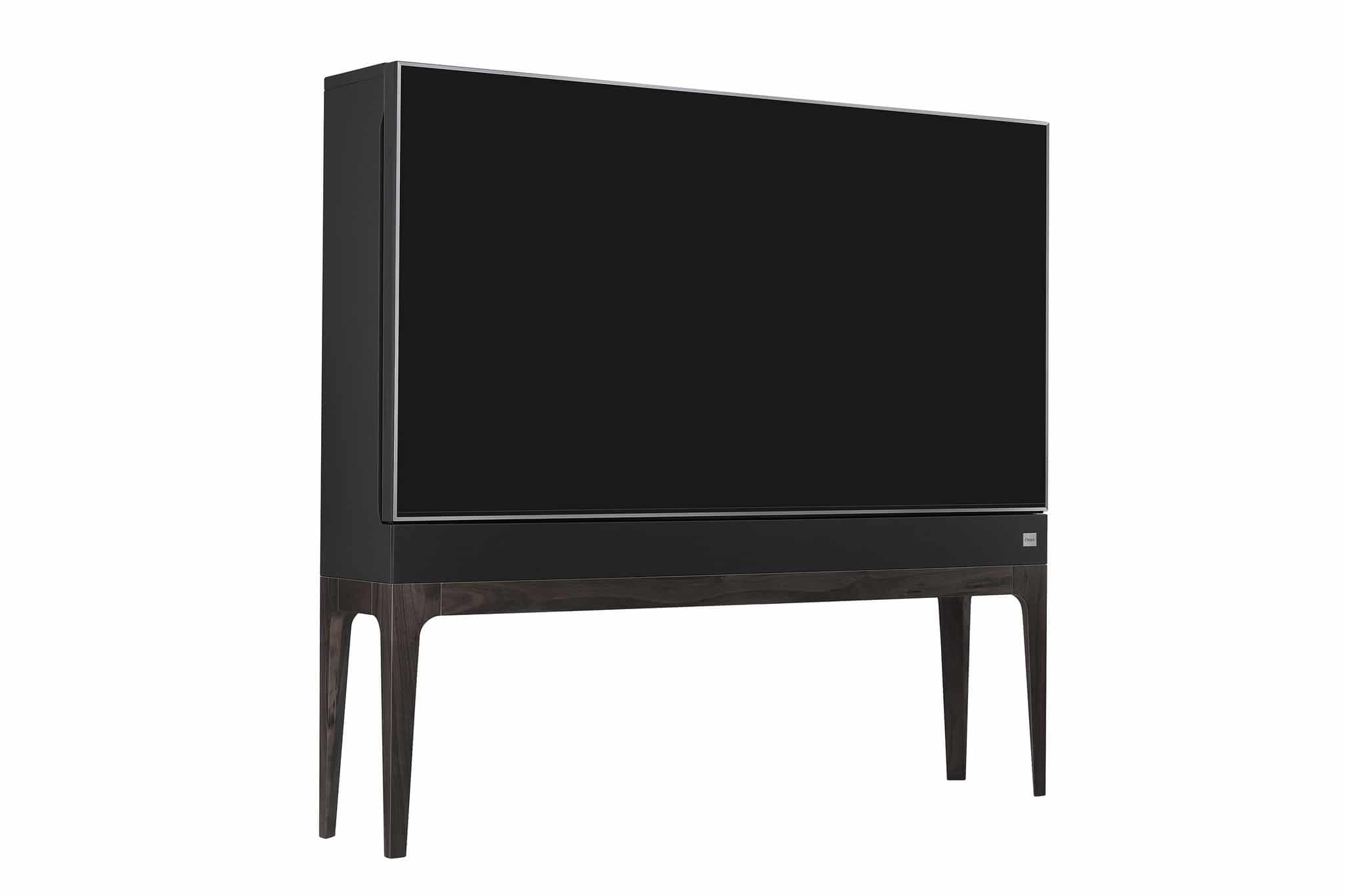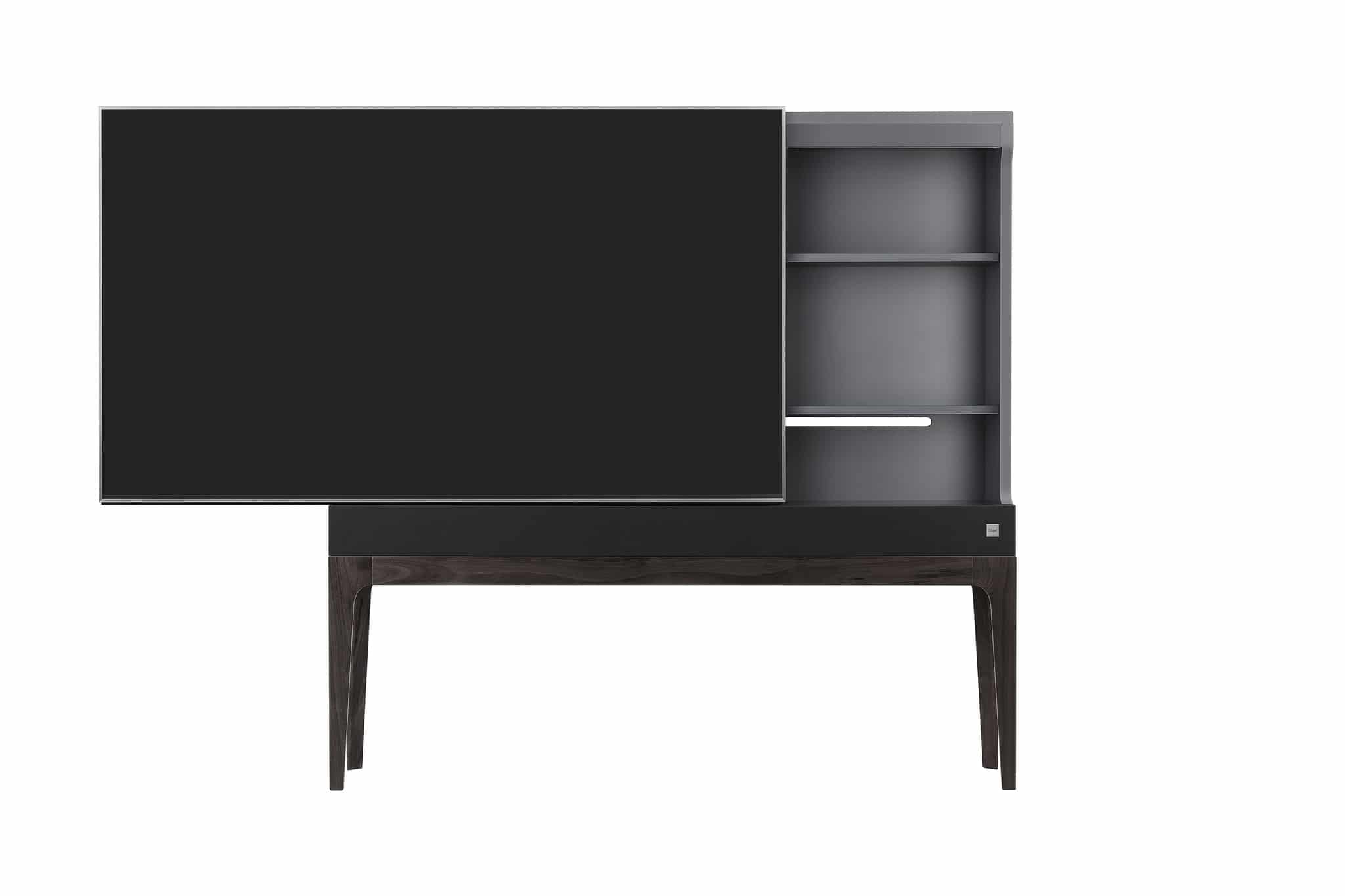 Der „Objet TV“ kombiniert ein Super UHD TV Display mit einem Schrank. Das Display verdeckt den Inhalt des Schranks, kann jedoch nach links und rechts zur Seite geschoben werden um an die darin befindlichen Gegenstände zu gelangen. Im linken Schrank-Segment sind zudem Steckdosen und die Anschlüsse des „Objet TV“ untergebracht. So können Zuspieler aus dem Sichtfeld des Nutzers verschwinden. Ein integrierter Soundbar in der Basis sorgt für eine direkte Klangwiedergabe. Uns was kostet dieser Spaß? Umgerechnet rund 7.300 Euro!
