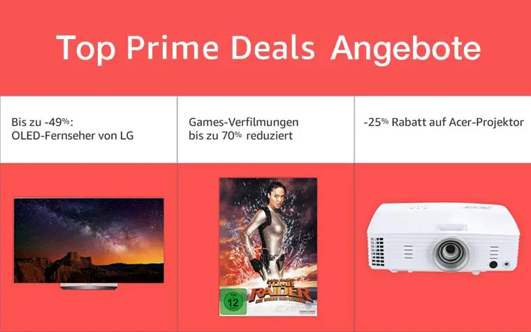 In den heutigen Top Prime Deals reduziert Amazon die Preise für LGs OLED Fernseher um bis zu 51 Prozent! Zudem gibt es 25% Rabatt auf Acers Full-HD Projektor H6518BD und bis zu 70% auf Games-Verfilmungen.