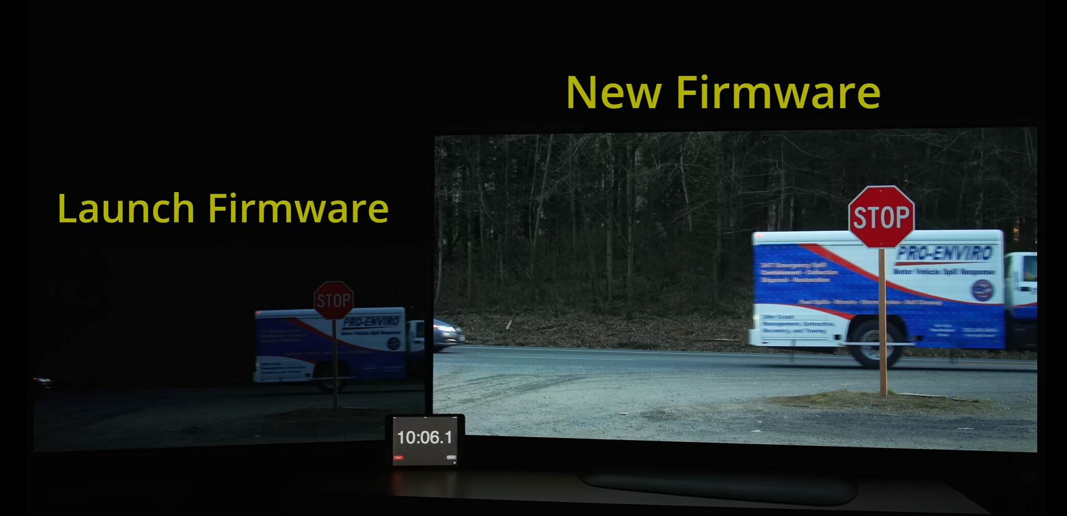 Die Firmware-Version 3.10.19 für die neuen OLED Fernseher der G3 und C3-Modellreihen verändert TPC nämlich so, dass diese nur bei statischen Bildern aktiv wird, z.B. bei einer pausierten Filmwiedergabe. Bei bewegten Inhalten, wie Filmen oder Spielen mit niedriger Helligkeit, kommt es jetzt nicht mehr zu einer unfreiwilligen Abdunklung (Dimming). Vincent Teoh hatte die Firmware bereits ausgetestet und der Unterschied lässt sich bei nachfolgenden Bildern mehr als deutlich erkennen: