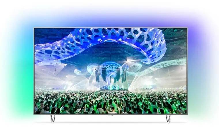 Den perfekten „Rahmen“ für die zukunftsweisende Bildwiedergabe bietet Philips Ambilight-Beleuchtung. Der 65PUS7601 verfügt über dreiseitiges Ambilight das um zehn Prozent heller ist gegenüber den Vorjahres-Modellen. Ambilight greift die Farben des Bildes auf und beleuchtet die rückwärtige Wand entsprechend. Das soll vor allem die subjektive Verbesserung der Kontrastwiedergabe und den Bildeindruck verbessern. Auch der Bildschirm wirkt mit Ambilight größer.