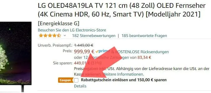 Originalbeitrag: Als Reaktion auf die reduzierten LG 4K OLED TVs auf Saturn.de reduziert Amazon die Preise beliebter TV-Modelle aus dem Produktjahr 2021. Vorneweg die neuen Einstiegs-Geräte der A1-Serie die es jetzt bereits ab 849 Euro zu kaufen gibt. ACHTUNG: Der Rabatt ist erst an der Kasse ersichtlich, jedoch noch vor dem Kaufabschluss. So könnt ihr noch prüfen ob alles korrekt ist!