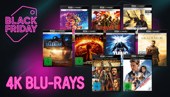 Die Black Friday-Woche startet auf Amazon mit einer unglaublichen Auswahl reduzierter 4K Ultra HD Blu-rays! Blockbuster-Filme wie „Gladiator 2“, „Oppenheimer“, „Top Gun: Maverick“ oder „Der Mario Bros Film“ gibt es für unter 14 Euro!