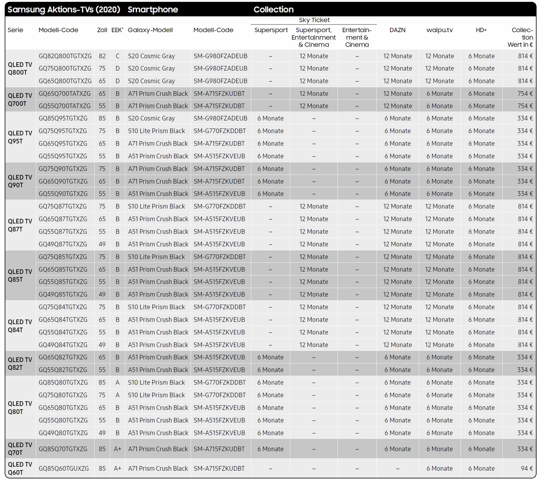 Letztere verheißt euch beim TV-Kauf kostenlose Nutzungszeiträume für etwa RakutenTV, waipu.tv und DAZN. Viel Spaß – unten findet ihr die Übersicht.