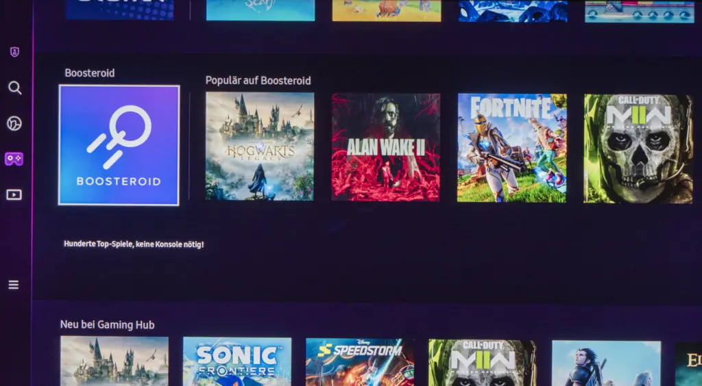Die aktuelle Auswahl an Game-Streamingdiensten auf Samsungs 4K/8K Fernsehern aus den Jahren 2022/2023 wird dagegen erweitert. Neben Xbox Cloud Gaming, GeForce Now, Amazon Luna, Atomic etc. bekommt ihr ab sofort Zugriff auf „Boosteroid“. Dieser Service fokussiert sich auf AAA-Spieletitel und stellt eine willkommene Erweiterung in Samsungs Gaming Hub dar. Wer das Abonnement für 7.50 Euro pro Monat abschließt, bekommt jedoch nur Spieletitel, die man bereits besitzt. Bedeutet, ihr mietet euch sozusagen einen performanten Gaming-PC in der Cloud, der dann eure gekauften Spiele aus Steam, dem Epic Store oder Battle.net wiedergibt. Also kein „Netflix für Gaming“.