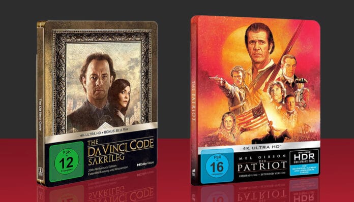Sony Pictures Home Entertainment bringt zwei absolute Filmklassiker erneut auf 4K Ultra HD Blu-ray in den Handel. Die limitierten Steelbook-Editionen zu „Der Da Vinci Code – Sakrileg“ und „Der Patriot“ können ab sofort vorbestellt werden. Releasetermin ist im Mai/Juni 2026.