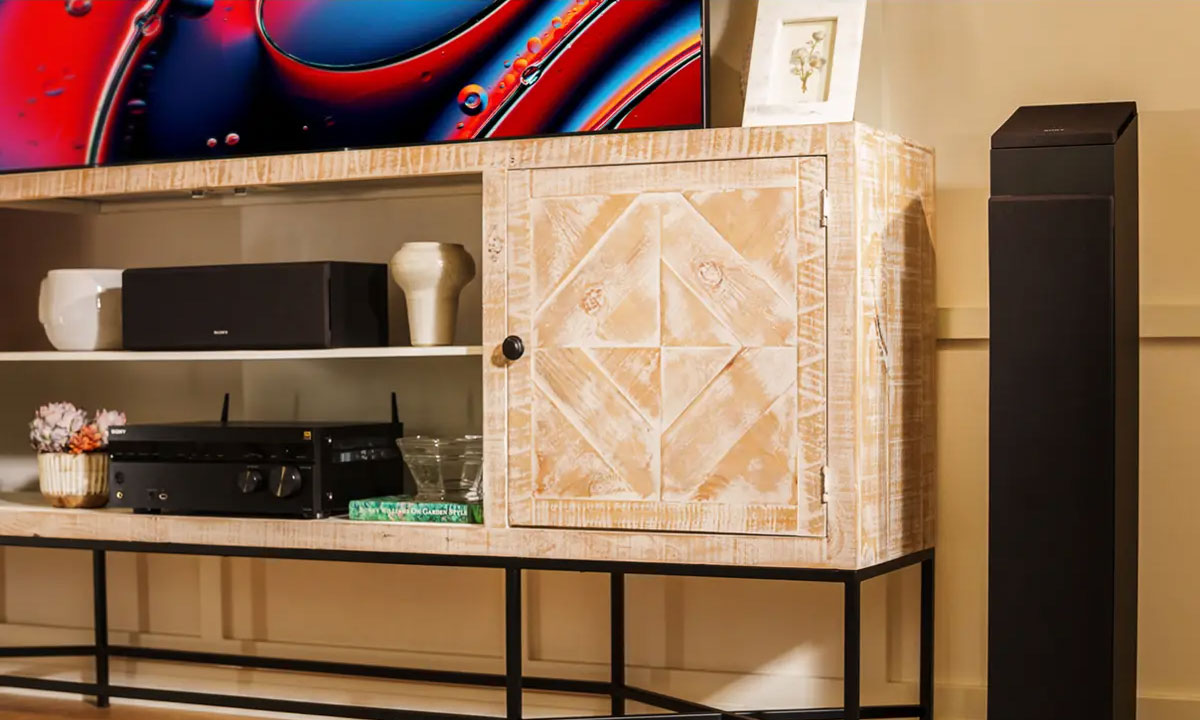 Die multifunktionalen Lautsprecher sollen sich laut Sony für Audio-Setups mit Stereo-Sound und Multikanal-Sound eignen. Auch Dolby Atmos und DTS:X 3D-Sound kann mittels der SS-CSEM2 Reflexions-Lautsprecher realisiert werden. Wer möchte, kann also mit zwei Standlautsprechern für ein Stereo-Setup starten (passende AV-Receiver gibt es ebenfalls von Sony) und dieses dann später mit Center- oder Regallautsprecher aufwerten. Schauen wir uns einmal die einzelnen Lautsprecher genauer an: