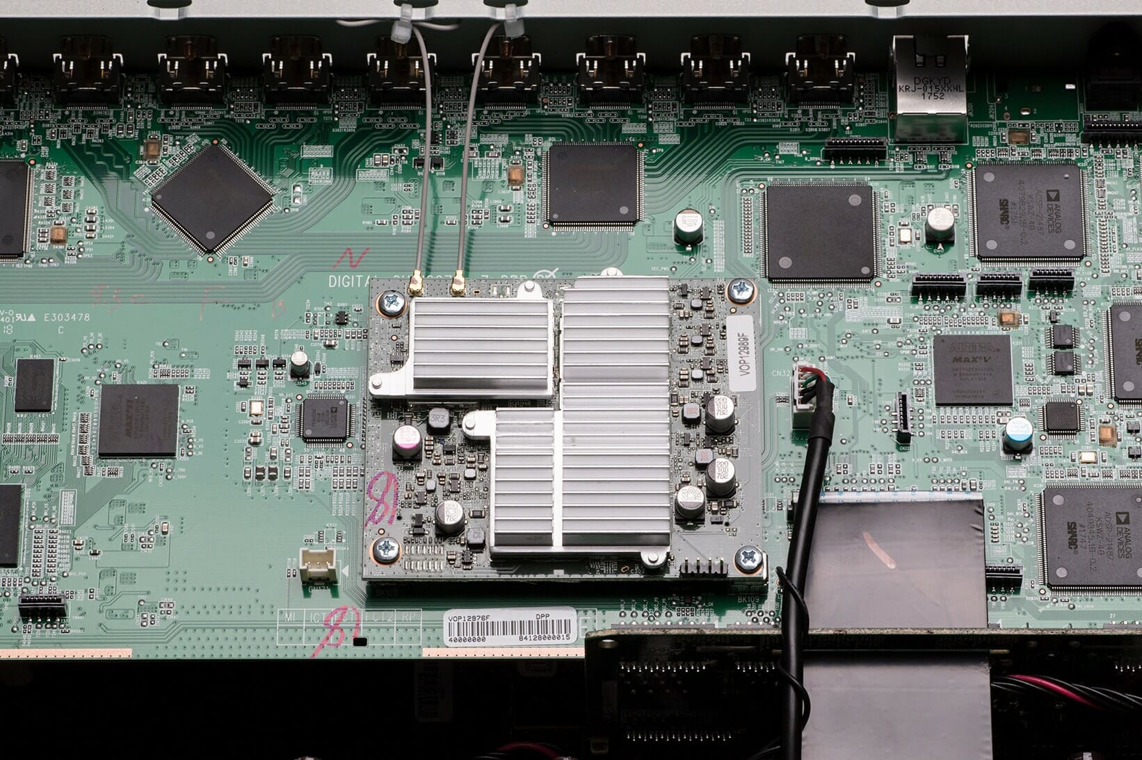 - 8 HDMI-Eingänge (einer davon vorn) mit voller HDCP 2.2-Unterstützung, 3 HDMI-Ausgänge