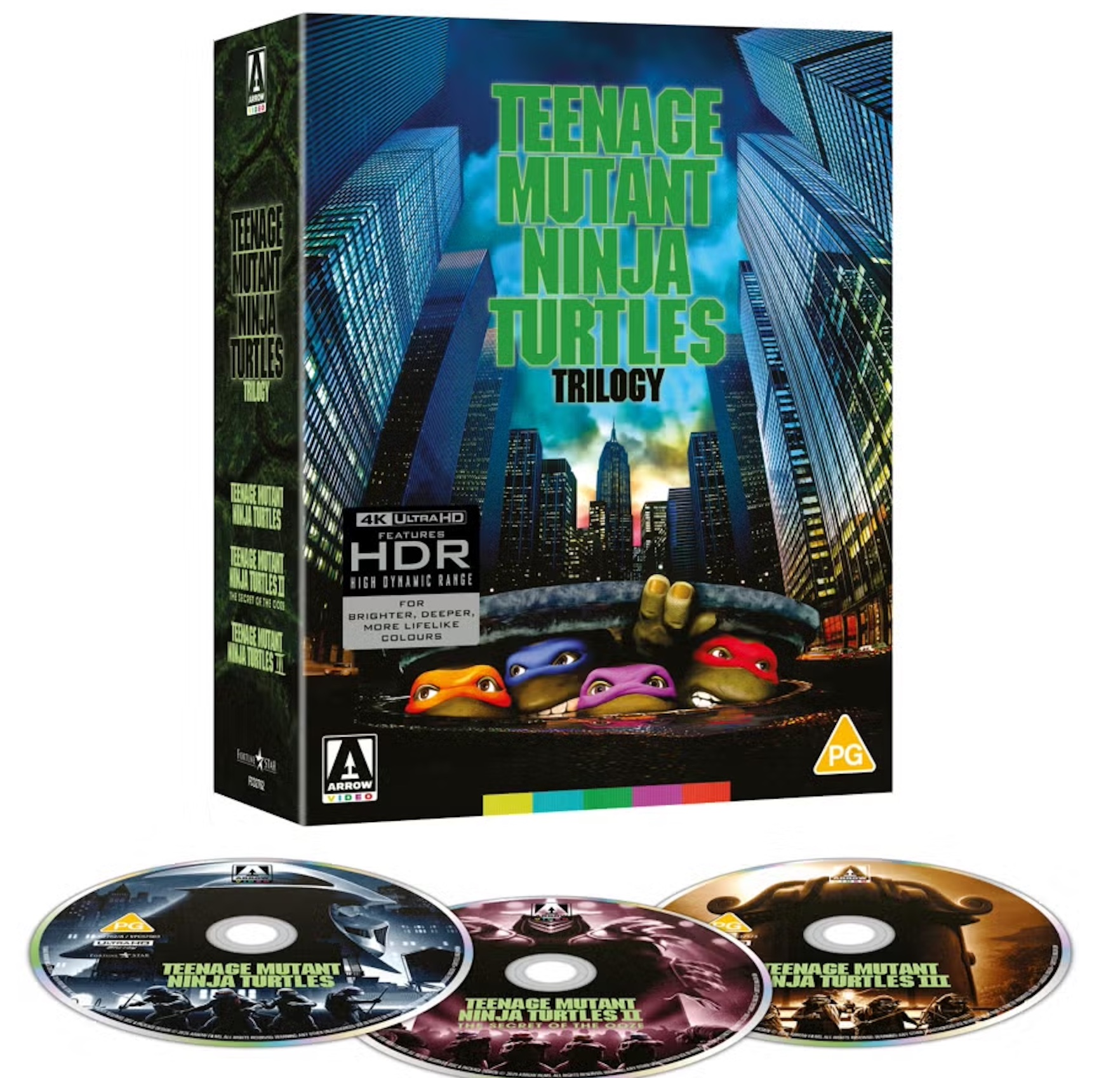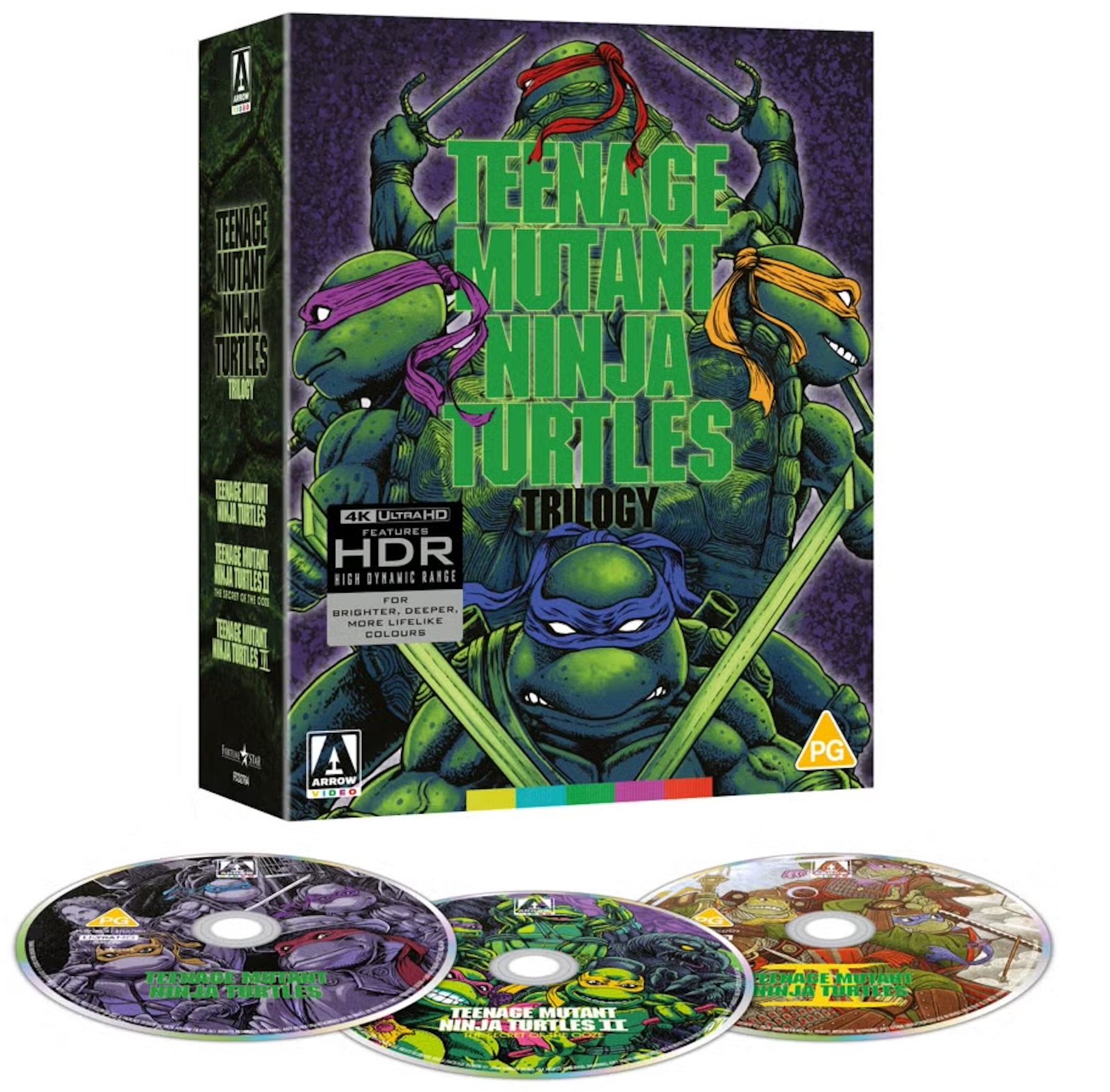 So hat sich für Großbritannien und die Vereinigten Staaten der Vertrieb Arrow Video die Rechte gesichert. Bedauerlicherweise werden die kommenden Discs daher keine deutsche Synchronisation beinhalten. Wer jedoch des Englischen mächtig ist, sollte einen Blick auf die kommende Limited Edition werfen. Dabei veröffentlicht man die „Teenage Mutant Ninja Turtles Trilogy Limited Edition 4K UHD“ einmal mit dem originalen Kino-Artwork und einmal exklusiv im Store von Arrow mit abweichendem Cover im Stil der Cartoons.