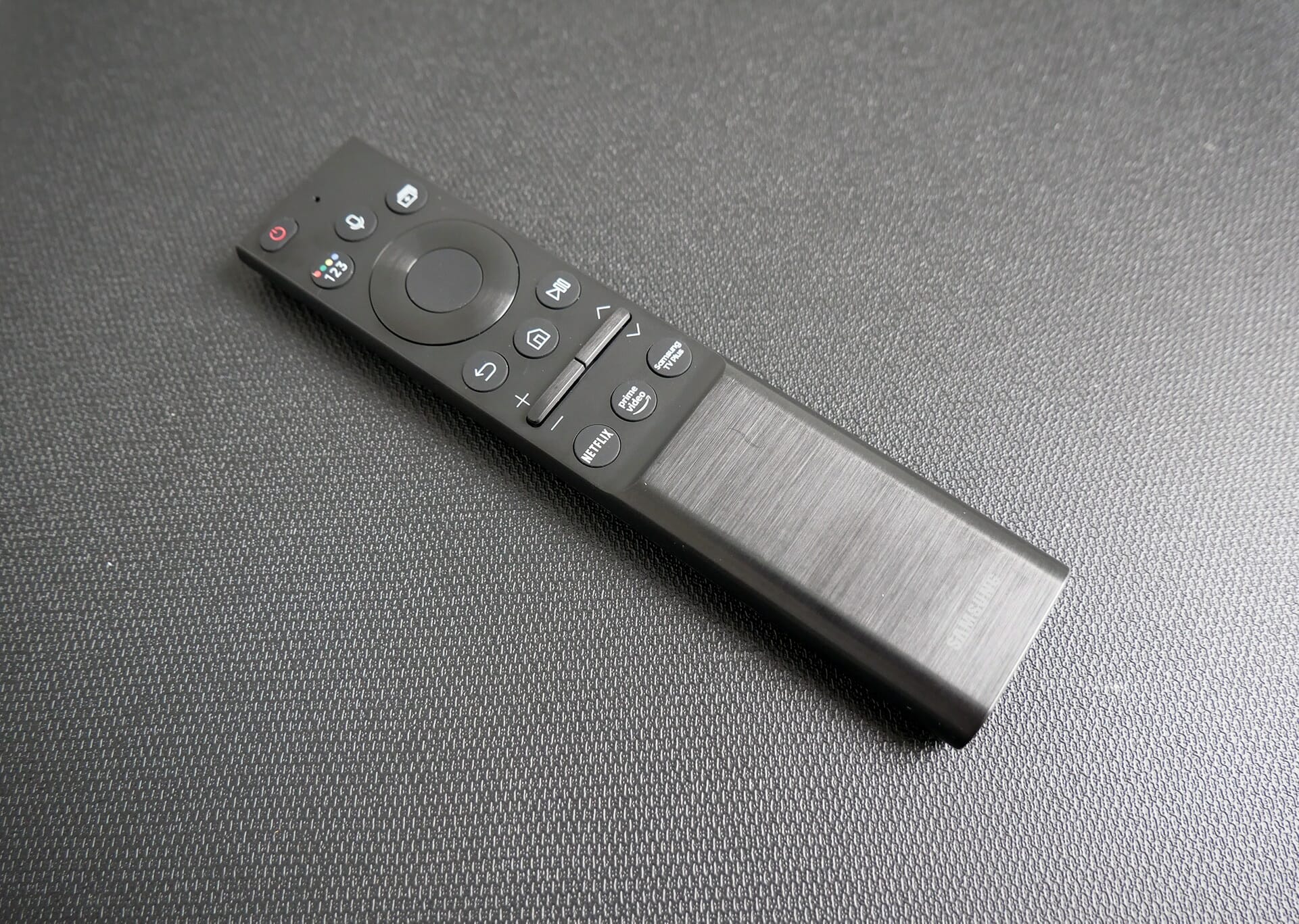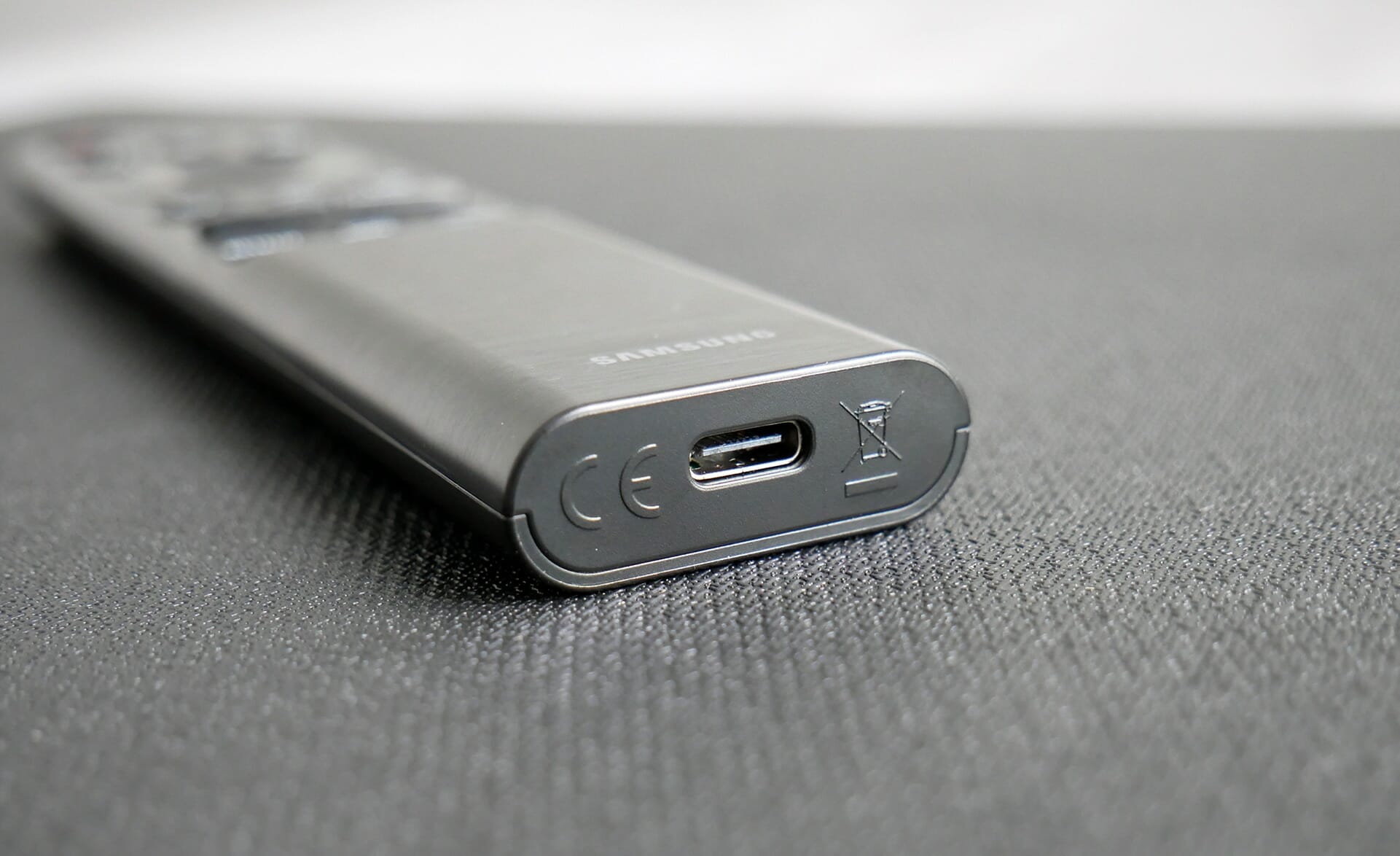 Neben der One-Connect Box hat auch die Fernbedienung von Samsung ein schickes Facelift erhalten. Das Kunststoffgehäuse präsentiert sich in einem edlen Mattschwarzen Finish und die Fernbedienung kann wahlweise per USB-C Kabel oder über das neue Solarpanel auf der Rückseite durch Tages- oder Lampenlicht aufgeladen werden. Wer die Fernbedienung nicht exzessiv nutzt, der wird die Remote nie laden müssen. Zudem verfolgt Samsung damit einen ökologischen Gedanken. Denn mit dem integrierten Akku fällt ein großer Berg Batteriemüll weg!