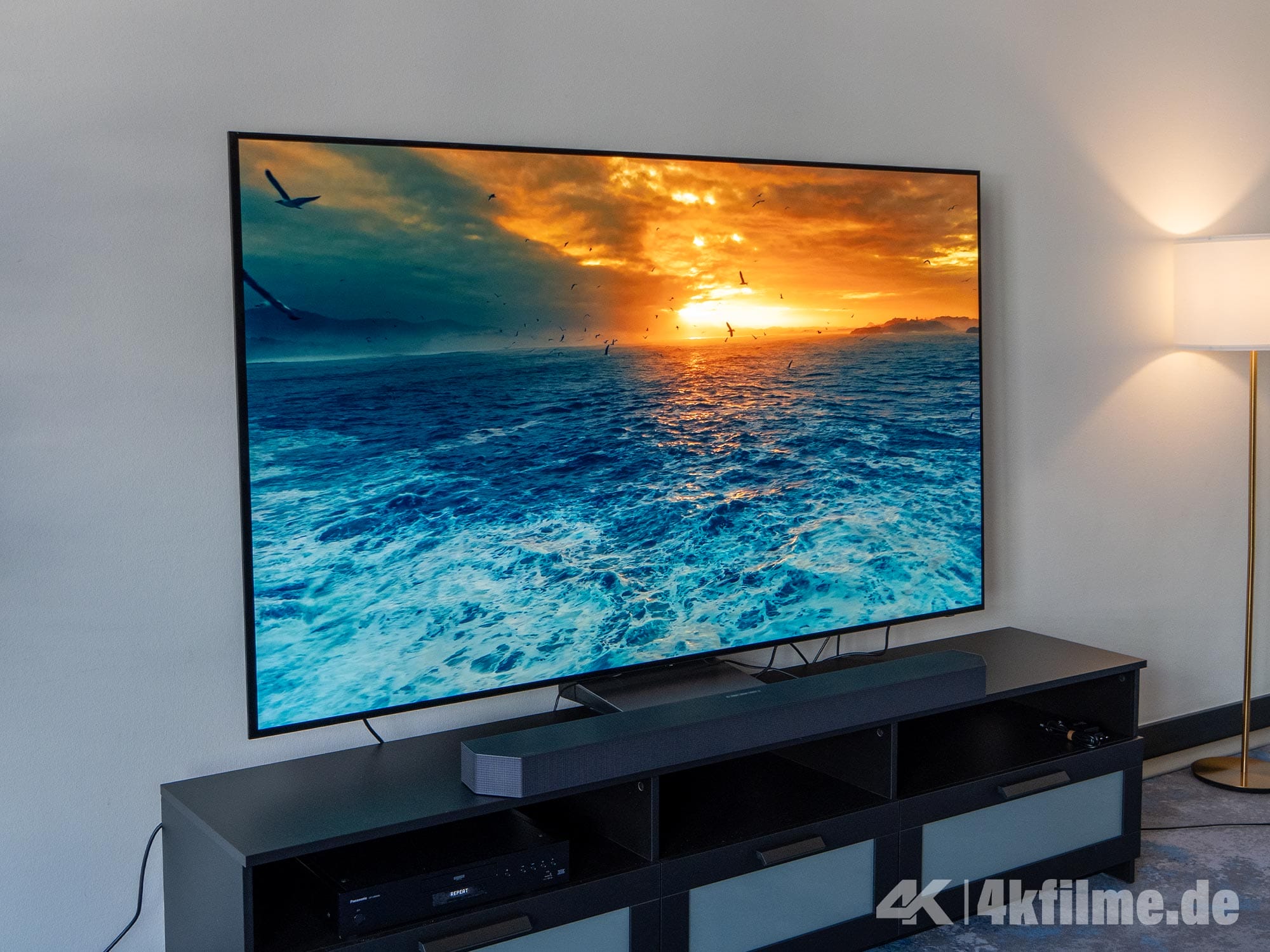 Und genau hier macht der Samsung S90H definitiv etwas richtig. Uns ist z.B. erst nach rund 15 Minuten aufgefallen, dass das 2026-Modell mit einem matten Display ausgestattet ist, und zu diesem Zeitpunkt hatten wir die Vorhänge des Vorführraums bereits zur Seite gezogen. Spiegelungen werden wirksam reduziert und eintreffendes Licht wird optimal zerstreut. Das müssen wir nicht messen, das können wir subjektiv beurteilen.