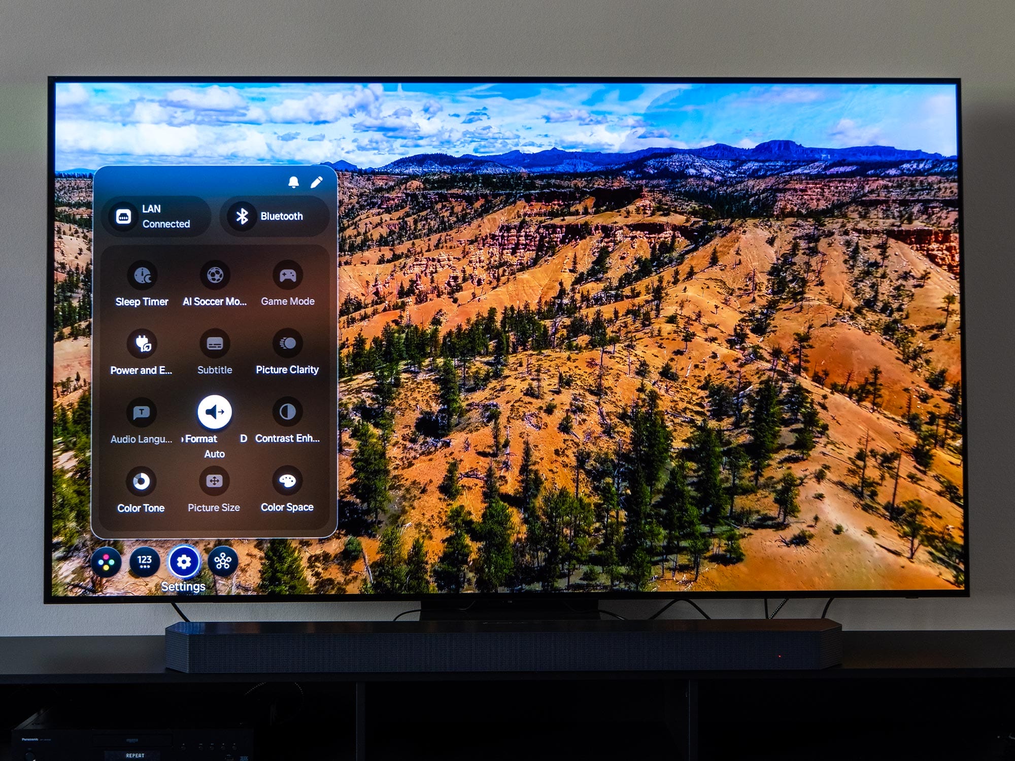 Die Bedienung des Samsung S90H ist uns so einfach von der Hand gefallen, dass wir nicht allzu lange im Home-Menü und den Einstellungsmenüs verbracht haben. Einstellungen für Bild und Ton sowie das Zuschalten von Features haben wir größtenteils über das Quick-Menü umgesetzt. Eigentlich gibt es bei der Menüführung und der Auswahl der Funktionen und Features nichts zu meckern.