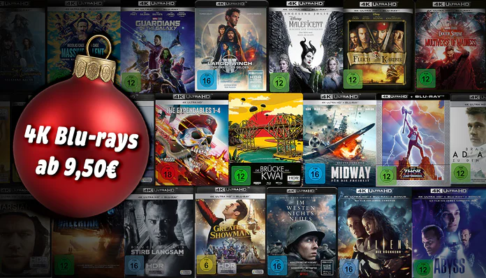 Wir haben gerade über den neuen Bestpreis eines unserer Lieblings-4K-Blu-ray-Player berichtet. Und wer sich vielleicht genau heute dafür entschieden hat, dem Hobby 4K Blu-ray einmal eine Chance zu geben, ist in diesem Beitrag goldrichtig. Denn aktuell werden über 160 ausgewählte Filme auf 4K Blu-ray zu Vorteilspreisen auf amazon.de angeboten. Wir haben uns erlaubt, einige Empfehlungen für optimale Bild- und Audioqualität den nach Preis geordneten Komplettlisten vorzustellen. So bekommt ihr als 4K-Einsteiger einen guten Einblick, was sich lohnen könnte. Klickt auf nachfolgende Links, um in die Sektion zu gelangen, die euch am meisten interessiert:
