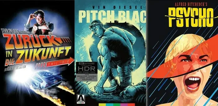 Universal Pictures bedient sich ja immer wieder gerne aus seinem Backkatalog. Entsprechend liefert das Unternehmen einen ausgewogenen Mix an Neuerscheinungen und Klassikern. So richtig klassisch wird es mit den Restaurationen der Alfred Hitchcock Filme, vorneweg „Die Vögel“, „Vertigo“, „Das Fenster zum Hof“ und „Psycho“. Letzterer ist bereits als Steelbook-Variante zur Vorbestellung aufgetaucht. Wir denken, die restlichen Titel werden ebenfalls als Steelbook erscheinen, später vielleicht als 4-Film-Box. Aus den glorreichen 1980er Kinojahren soll uns die „Zurück in die Zukunft“ Trilogie erreichen. Der erste Teil feiert in diesem Jahr 35-jähriges. Zudem steht immer noch „Dune – Der Wüstenplanet“ und „Inglorious Basterds“ aus. „Pitch Black“ und „The Chronicles of Riddick“ sollen ebenfalls in der Mache sein, ein Titel wird in den USA sogar bereits auf 4K Blu-ray angeboten.