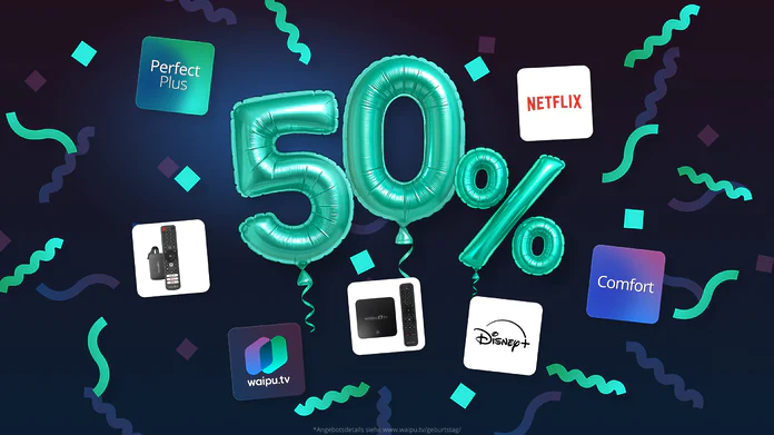 So wird waipu.tv 9 Jahre alt und will Neukunden zum Mitfeiern des Geburtstags einladen. Deswegen kosten die Perfect-Plus-Abos aktuell nur den halben Preis. 7,50 Euro statt der üblichen 14,99 Euro fallen deswegen lediglich an. Abonnenten erhalten Zugriff auf über 310 TV-Sender sowie über 40.000 Inhalte auf Abruf über die waiputhek. Es gibt das „kleinere“ Comfort-Paket als günstigen Einstieg zeitgleich sogar schon ab 3,74 Euro im Monat.