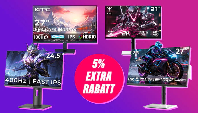 KTC gewährt euch zu den Weihnachtsfeiertagen 5% Extra-Rabatt auf bereits reduzierte Gaming-Monitore! Ihr habt die Wahl zwischen vier Modellen mit 25 Zoll oder 27 Zoll mit bis zu 400 Hz!