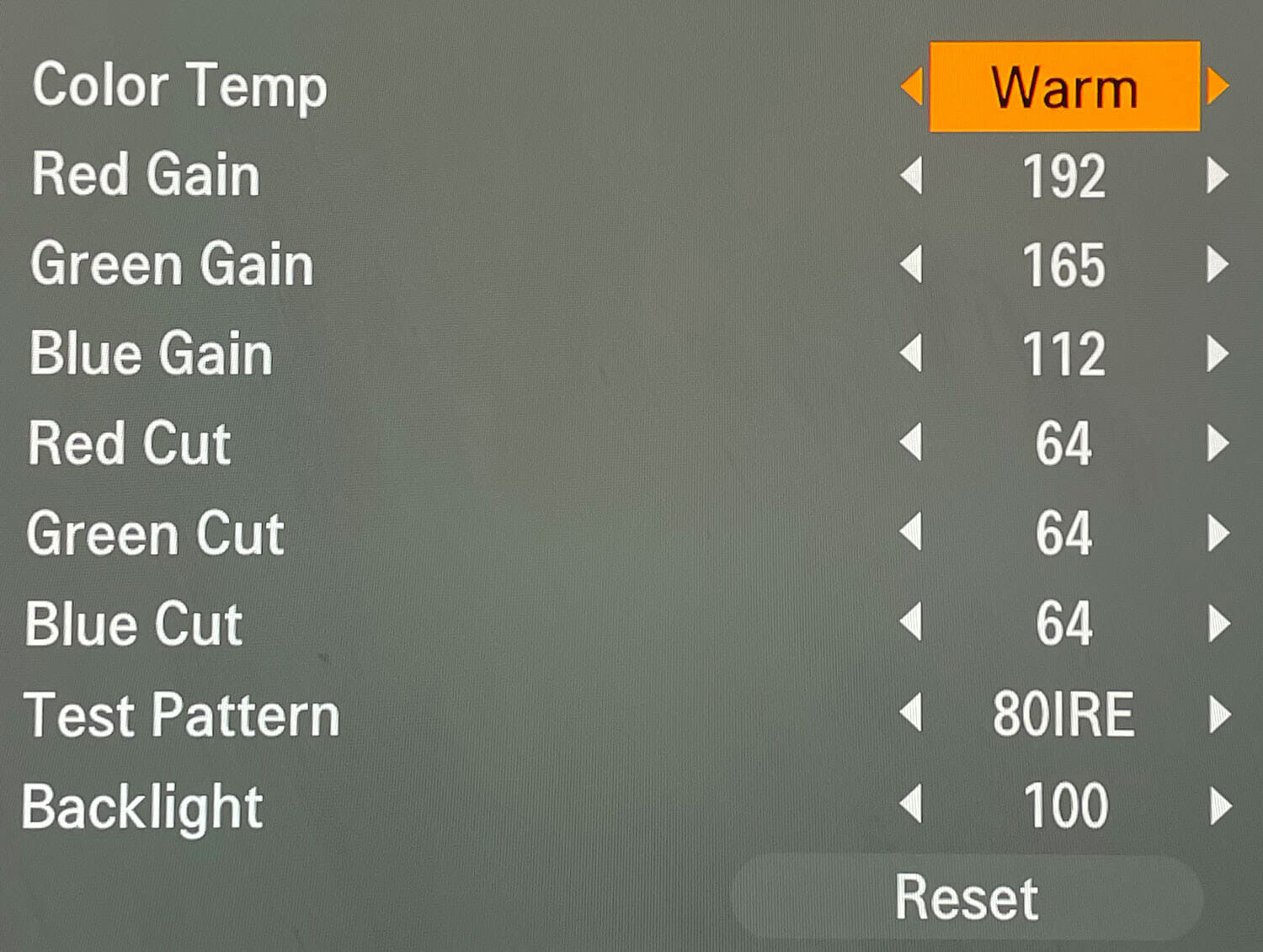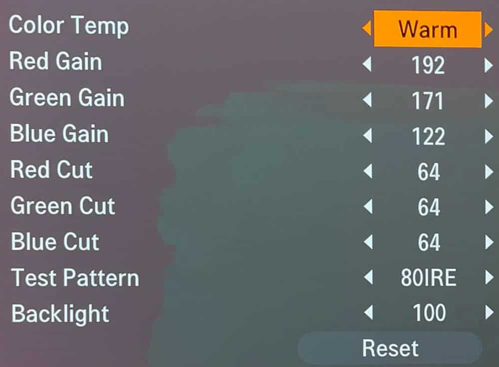 Bevor sich einige jetzt fragen, wo dieses Menü im LG zu finden ist, dem sage ich gleich vorweg, dass man, um dort hinzukommen, eine Service-Remote benötigt und definitiv wissen sollte, was man tut, ehe man sich hier sein Gerät zerschießt. Daher raten wir Anfängern und allen, die sich unsicher sind, dringend davon ab hier etwas zu verstellen. Ein Verlust der Garantie droht! Wer dennoch einen Blick riskieren möchte, um beispielsweise die Betriebsstunden auszulesen, der kann die Service-Remote für wenige Euro bei amazon finden. Statt den Weißabgleich im Bildmenü vorzunehmen, wie es gängige Praxis ist, stelle ich den Weißpunkt im Service-Menü ein. Dies mache ich deshalb, da somit im Vergleich zur herkömmlichen Methode kein zusätzliches Processing des SoC (System on Chip) stattfindet und insgesamt ein besseres Ergebnis erzielt werden kann. Ferner bieten die Regler im Service-Menü eine deutlich feinere Justierung der Gain und Bias Parameter.